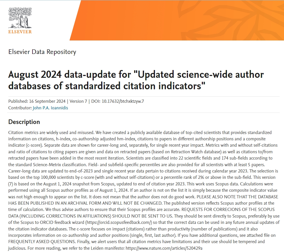 近日,爱思唯尔数据库(Elsevier Data Repository)和美国斯坦福大学发布了2023年...