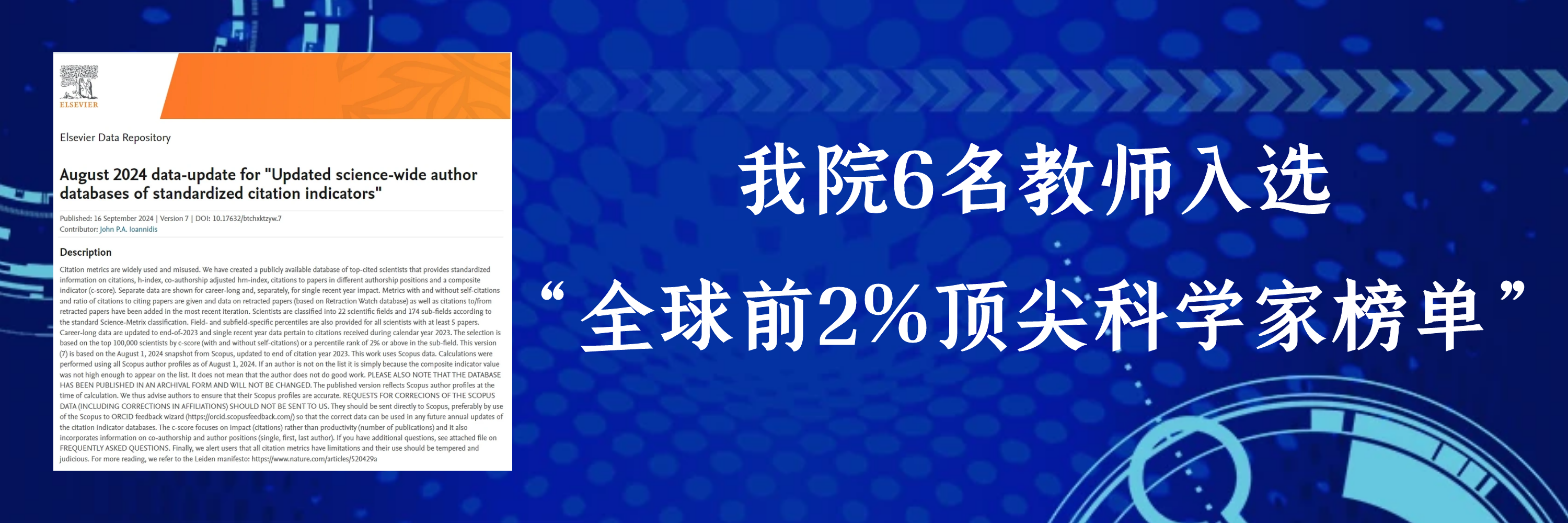 15VIP太阳集团6名教师入选“全球前2%顶尖科学...