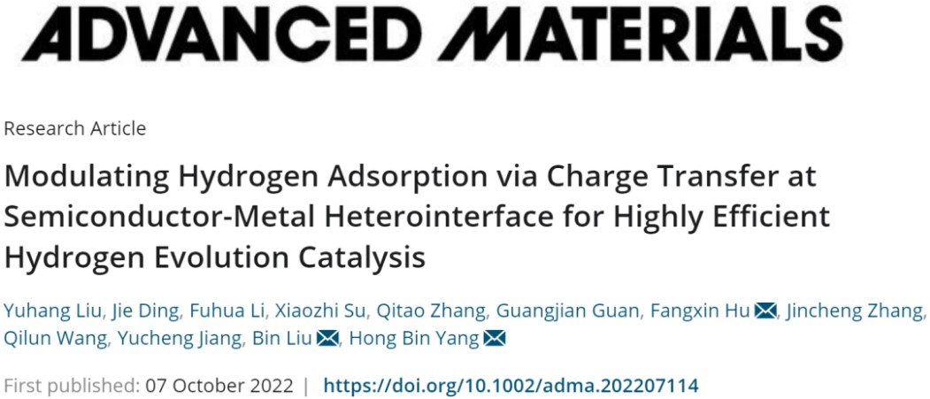 近日,国际材料顶级学术期刊《Advanced Materials》(IF=32.086)刊登我校15VIP太阳集团杨鸿斌教授在新能源制氢领域取得的新进展。这是我校以第一单位和通讯单位,且以第一作者和通讯作者首次在该期刊上发表研究成果。