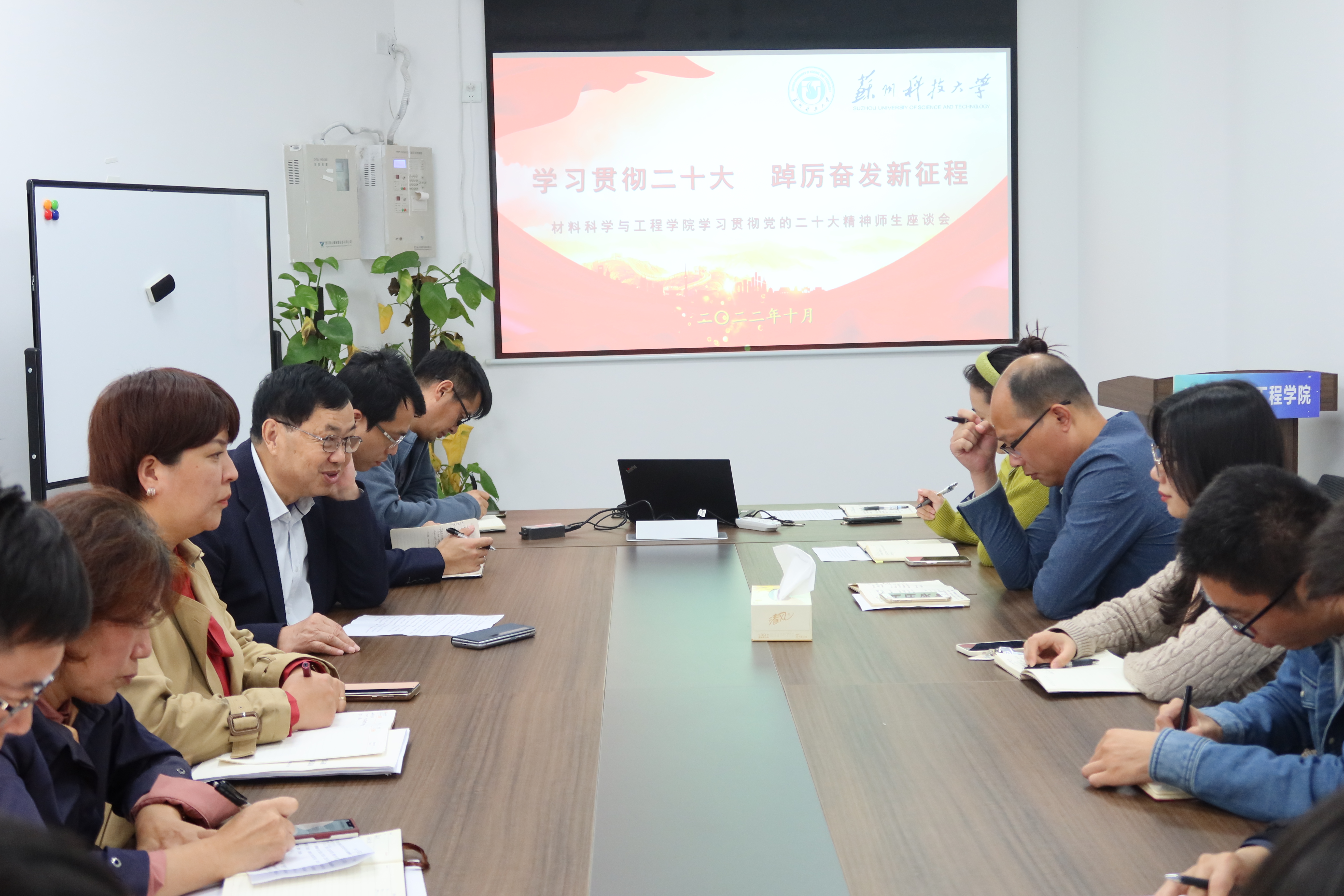 10月19日下午,15VIP太阳集团于院士楼214会议室召开了主题为“学习党的二十大 踔厉奋发新征程”的学习党的二十大精神师生代表座谈会。会议由党总支副书记李永丹主持。学院党政领导班子全体成员和师生代表20余人参加了会议。