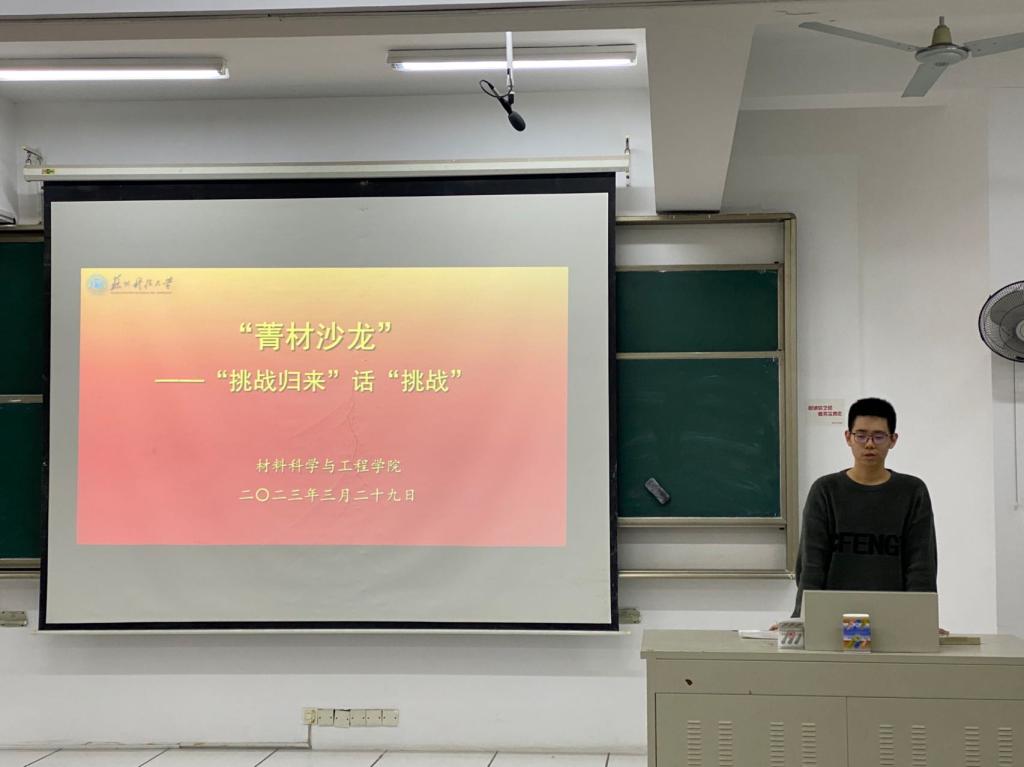 3月29日,15VIP太阳集团在7教310举办了“菁材沙龙”之“挑战杯”竞赛经验分享会。会议由学院党总支副书记兼副院长李永丹主持,学院副院长杨晓刚、部分老师出席,大一同学参会。