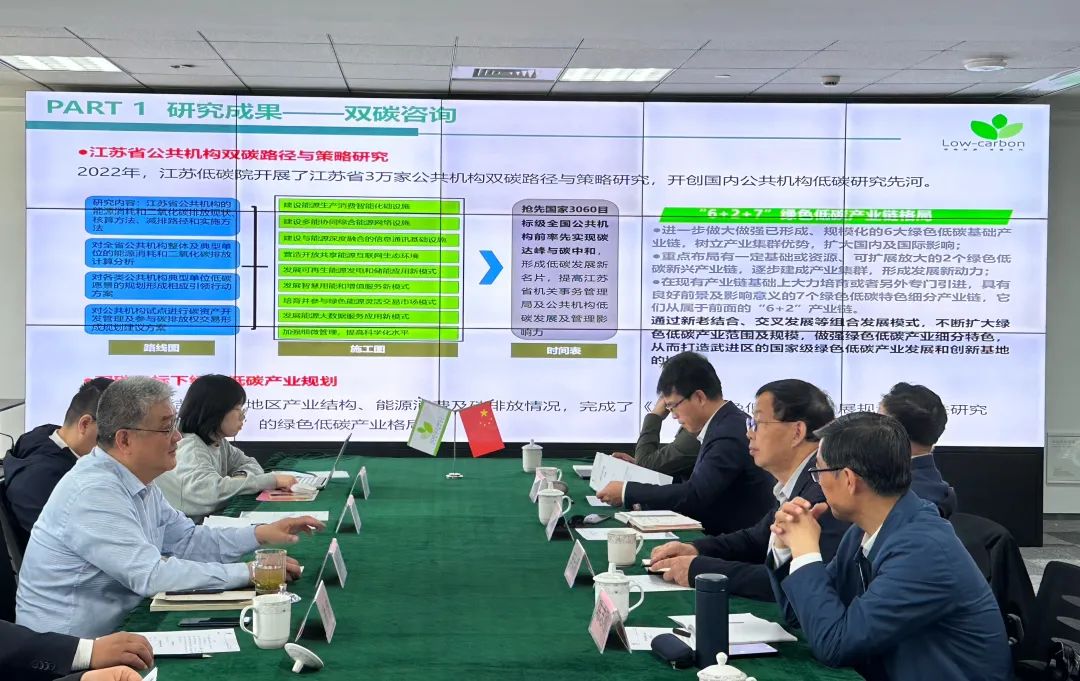 江苏低碳院院长徐拥军对李长明教授一行的到来表示欢迎,并介绍了低碳院的发展历程、业务架构以及落户苏州两年来在双碳领域取得的工作成果。
