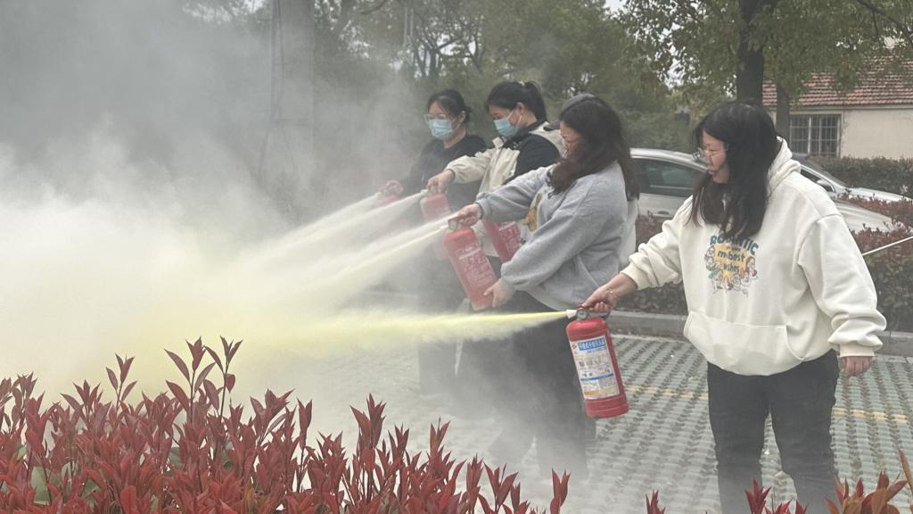 随后,在保卫科工作人员的组织和专业指导下,师生们进行了应急疏散和灭火演练,了解消防逃生路线,掌握了基本的干粉灭火器使用方法和技巧。