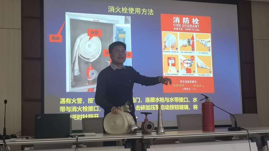 学院邀请校保卫处消防管理科副科长卢致远开展生命至上防患于未“燃”消防安全培训讲座。卢科长从典型火灾案例、消防常识、消防设施使用、火灾扑救及逃生等方面开展培训,并强调,要了解消防安全“四懂四会”,懂得火灾的危险性,学会及时预防、扑救、逃生。