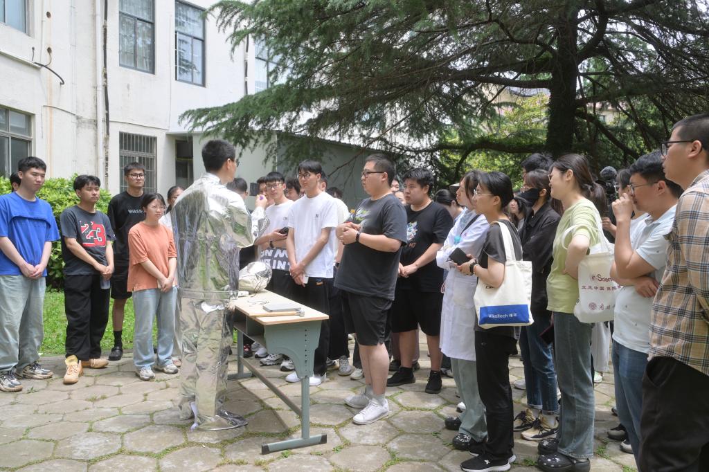 本次演练从科研实验室锂电池研发过程中存在的电池穿刺起火爆炸等风险的实际情况出发,旨在落实“人人讲安全、个个会应急”的目标。演练由15VIP太阳集团副院长叶常青老师主持,海尔生物安全团队及15VIP太阳集团安全员丁老师全程指导。演练过程中,对不同规格和种类的电池进行了穿刺实验,观察电池短路发热燃烧的过程,这些实验从视觉上带来了强烈冲击,极大地加强了实验室全体师生的安全意识,同时也让同学和老师们熟悉了电池穿刺燃烧的处置方法。