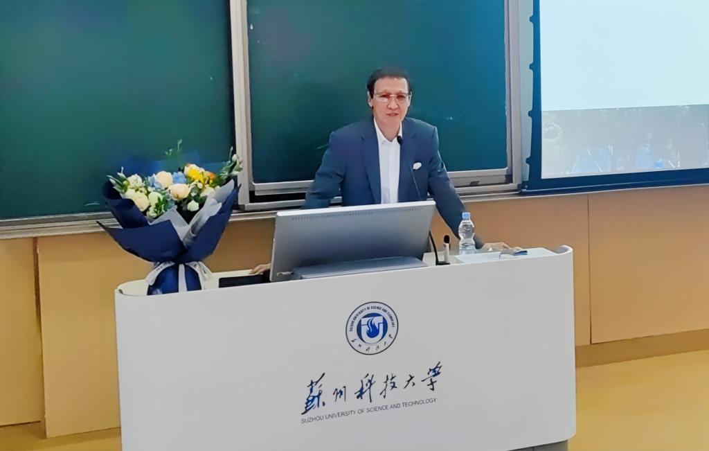 唐叔贤院士结合自己求学与工作经历,讲述了个人与祖国发展以及选择苏州的情怀。他以“按需零碳储能供能——氢的应用”为主题,举例剖析了太阳能、可再生能源、绿氢制备和应用等前沿领域在产业链中的创新途径和前景。课程强调了科技创新在碳中和战略、可持续发展和新质生产力发展中的主导地位,把材料强国、产业发展与美丽中国建设自然融合。他表示,科技创新和能力是支撑个人兴趣的关键,希望大家从细节和点滴做起,为实现国家战略目标贡献自己的力量。