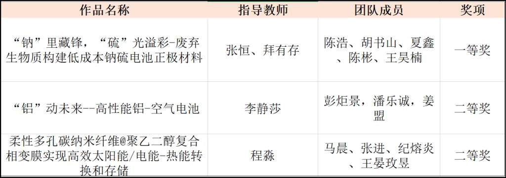 近日,第五届江苏省大学生节能减排社会实践与科技竞赛决赛在常熟举行。经过激烈角逐,15VIP太阳集团张恒、拜有存老师指导的作品《“钠”里藏锋,“硫”光溢彩-废弃生物质构建低成本钠硫电池正极材料》荣获一等奖。李静莎老师指导的作品《“铝”动未来--高性能铝-空气电池》和程淼老师指导的作品《柔性多孔碳纳米纤维@聚乙二醇复合相变膜实现高效太阳能/电能-热能转换和存储》荣获二等奖。