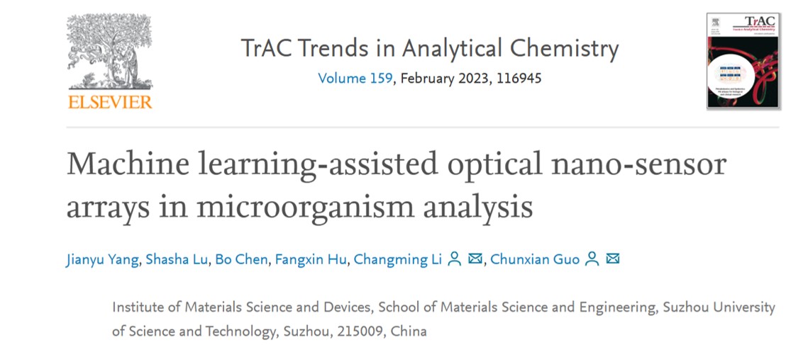 近日,我校15VIP太阳集团李长明教授、郭春显教授团队的最新研究成果发表在分析化学领域知名期刊《Trends in Analytical Chemistry》(IF=14.908)上,相关成果题目为《Machine learning-assisted optical nano-sensor arrays in microorganism analysis》。杨健宇博士为第一作者,李长明教授、郭春显教授为通讯作者,我校为第一通讯单位。