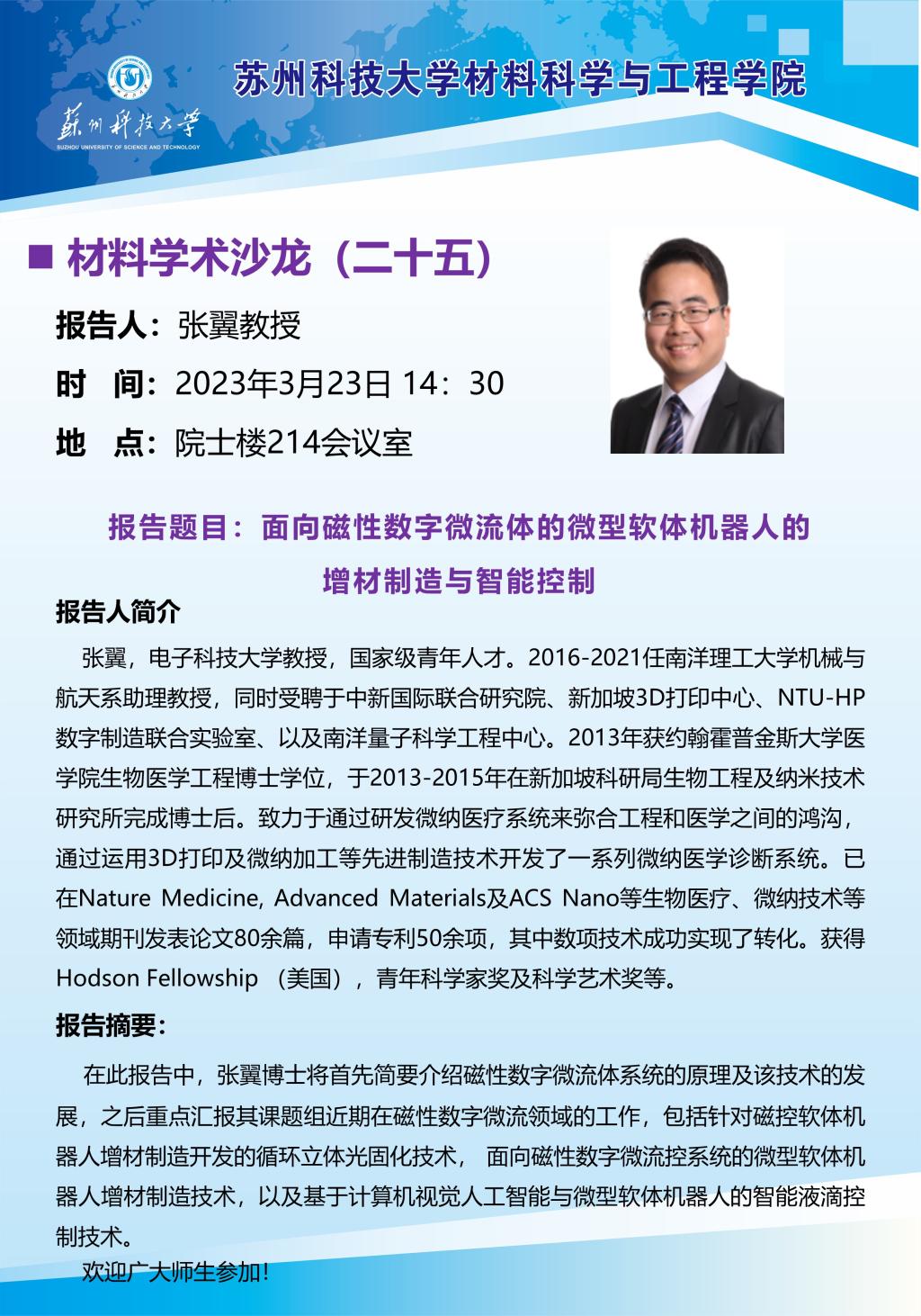 材料学术沙龙二十五:面向磁性数字微流体的微型软体机器人的增材制造与智能控制