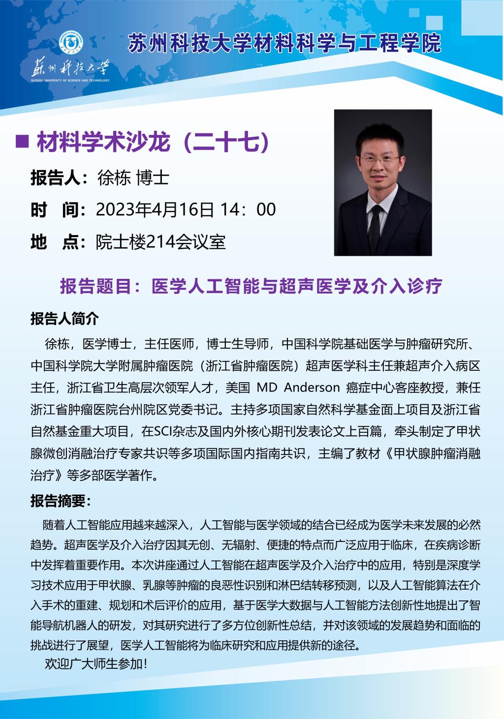 材料学术沙龙二十七:医学人工智能与超声医学及介入诊疗