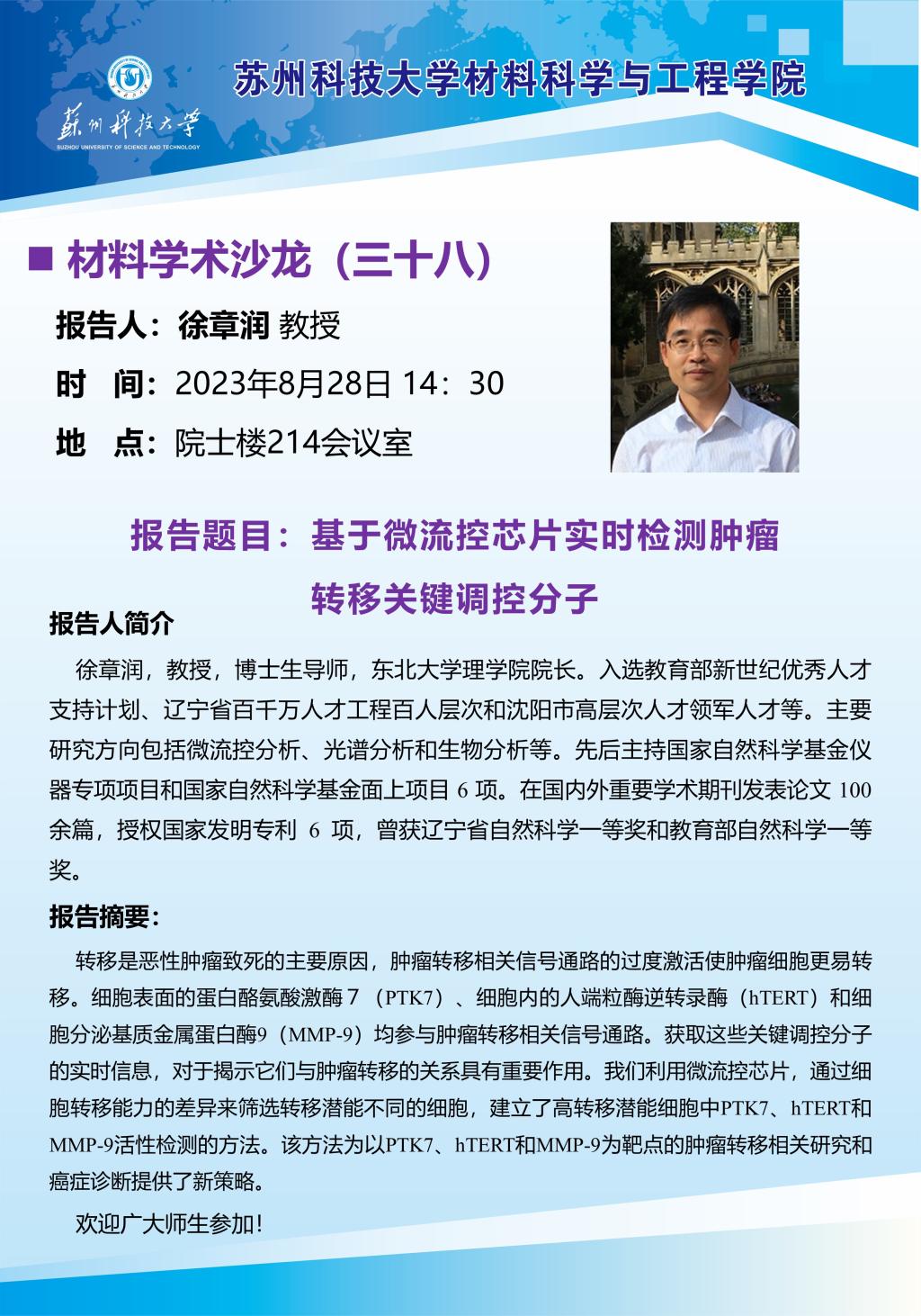 材料学术沙龙三十八:基于微流控芯片实时检测肿瘤转移关键调控分子