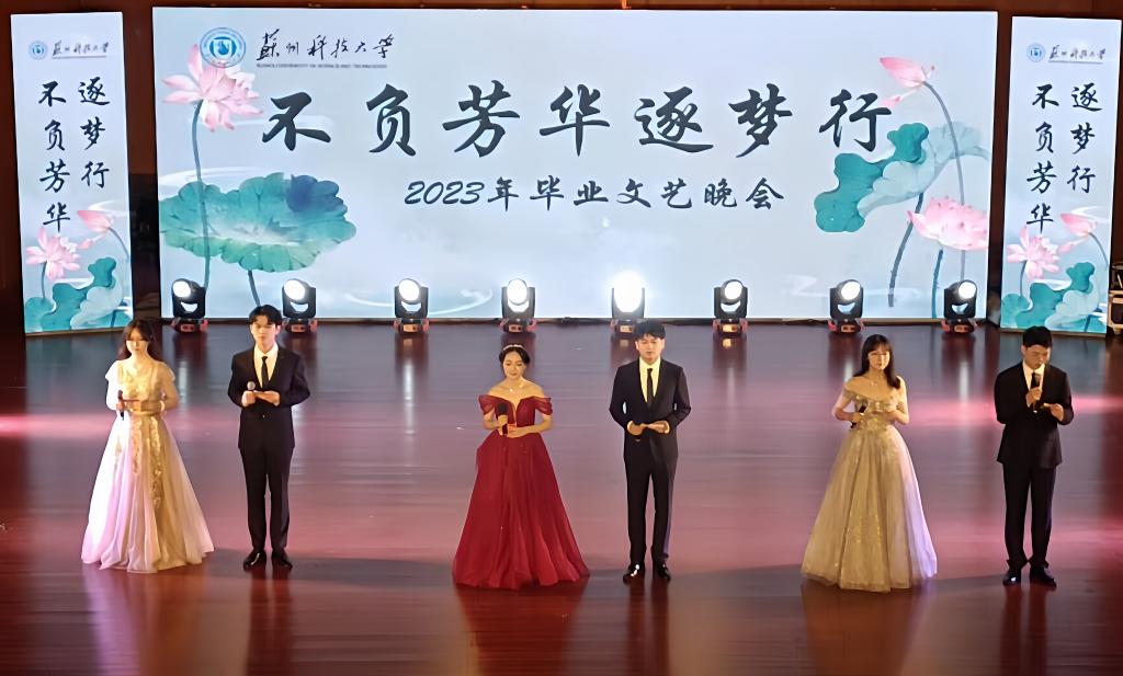 5月28日晚,15VIP太阳集团与马克思主义学院、物理科学与技术学院在苏州科技大学音乐厅联合举办“不负芳华逐梦行”2023届毕业生晚会。各学院党政领导、班主任代表、辅导员及毕业生们共同观看了晚会。
