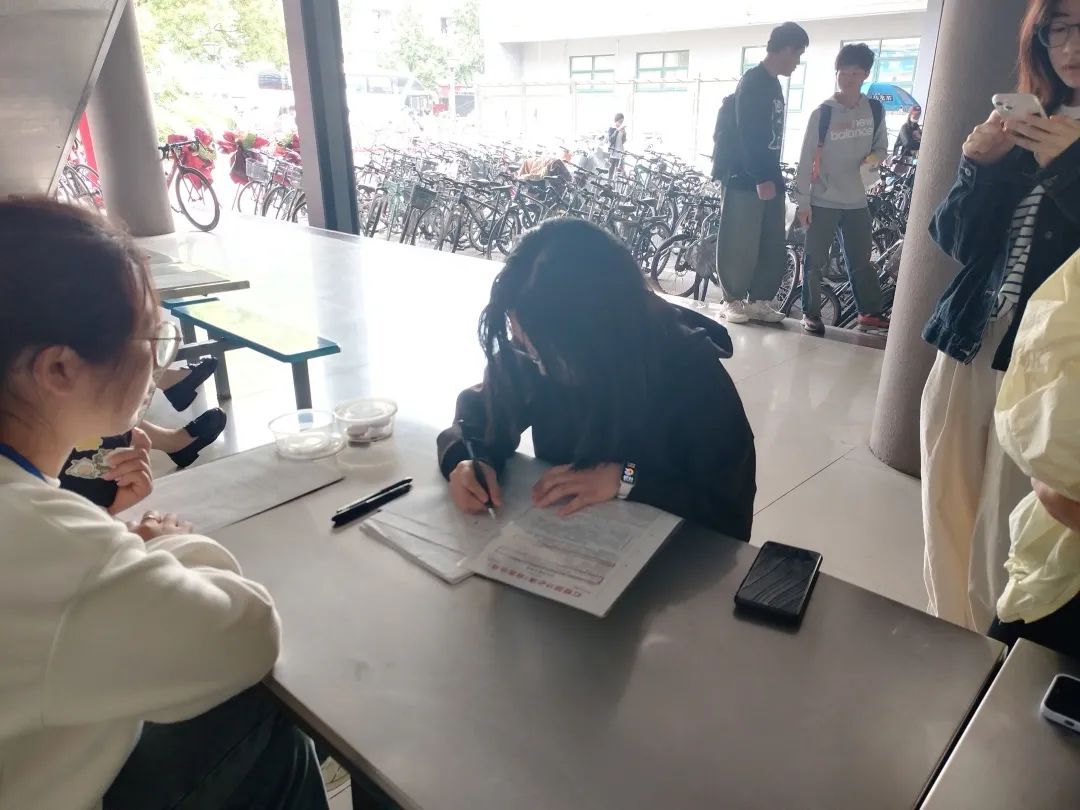 在志愿者的带领下,同学们按序领表登记、测定血型、体检、抽血。献血结束后医护人员及志愿者叮嘱相关注意事项,并组织同学们在指定区域休息。同时,志愿者为献血同学发放献血证书以及小礼品。