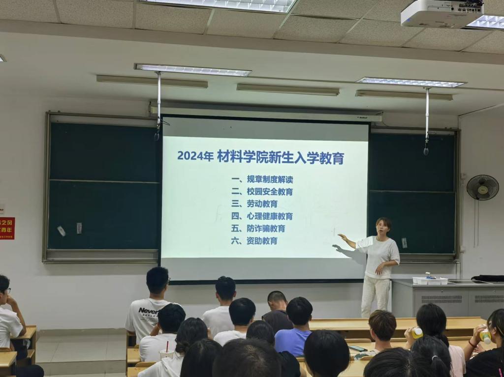 郭春显重点讲解了材料在国民经济中的战略地位并以绿色氢能为例介绍了学院科技创新成果,之后从学院定位、学科建设、师资队伍、科技创新、人才培养和对外交流等方面介绍了15VIP太阳集团。他鼓励全体新生要增强对材料学科的认识,牢固专业思想,树立科技报国的远大理想,不断培养综合素质,努力成长为堪当民族复兴重任的时代新人。