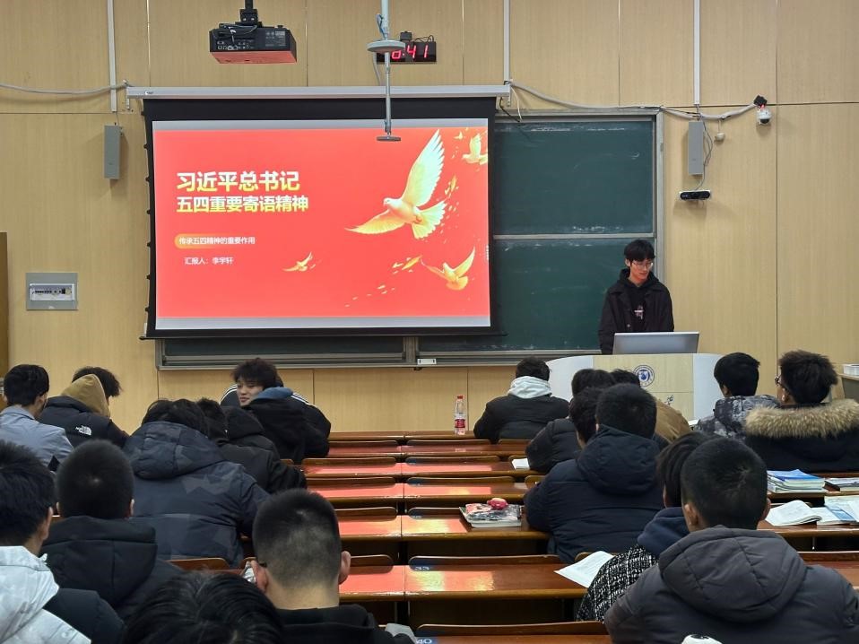 团课上,李宇轩同学带领同学们围绕“五四精神”的含义与精神内涵展开了热烈讨论。大家一致认为,担当是青年一代应有的品质,它代表着责任与使命,是我们在新时代背景下的必然选择。通过深入学习,我们更加清晰地认识到,只有勇于担当、敢于担当,才能真正成为新时代的奋斗者和追梦人。