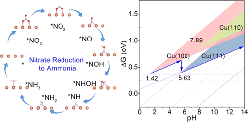 2021年11月,国际著名期刊ACS Catalysis刊登了课题组“Theoretical Insights into Superior Nitrate Reduction to Ammonia Performance of Copper Catalysts”的工作,该工作针对铜其固有的晶面催化活性和pH值影响尚不清楚的科学问题,利用密度泛函理论计算,在不同 pH 值下,在低指数晶体表面Cu(111)、Cu(100) 和 Cu(110) 上评估硝酸盐还原为氨的途径,总结了铜表面的活性差异归因于局部配位环境和表面原子的电子状态。胡涛博士为第一作者,郭春显教授为通讯作者,该成果发表后,被系列媒体包括科研公众号“顶刊动态”等报道。