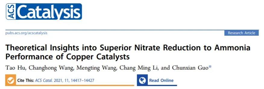 Theoretical Insights into Superior Nitrate Reduction to Ammonia Performance of Copper Catalysts. ACS Catalysis, 2021. DOI: 10.1021/acscatal.1c03666