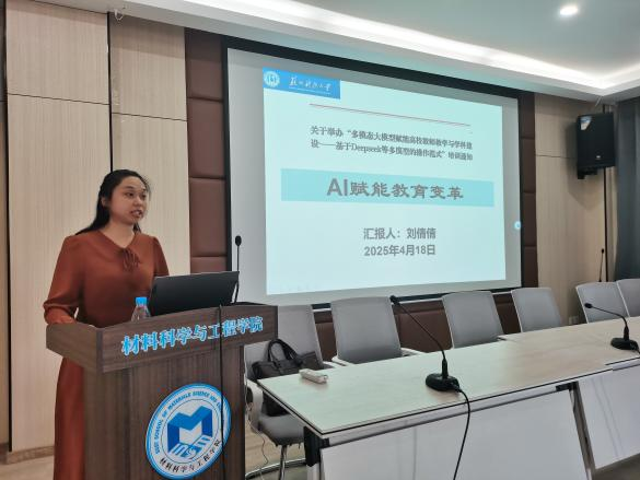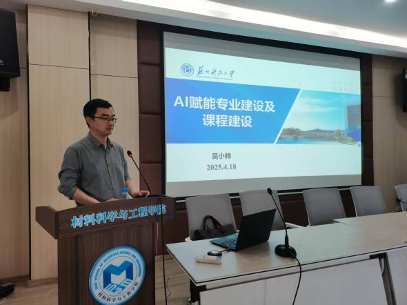 新能源材料与器件专业系主任吴小帅副教授从AI驱动的高等教育变革趋势、AI技术与专业建设的融合路径、数智时代新工科一流课程改革与建设实践三个方面与教师进行交流和分享;新能源材料与器件专业刘倩倩副教授以Deepseek为例,介绍了不同AI工具的使用策略,从AI撰写教学设计、完善教案、制定评价方案、AI评价作业、AI设计学习指南等方面进行了现场展示。杨晓刚指出,面对AI时代的机遇和挑战,青年教师应把握时代的潮流,在课程体系、教材建设、教学方法、教学评价等方面积极创新,将教育信息化的教学模式改革与“以学生为中心”的教学理念结合起来。