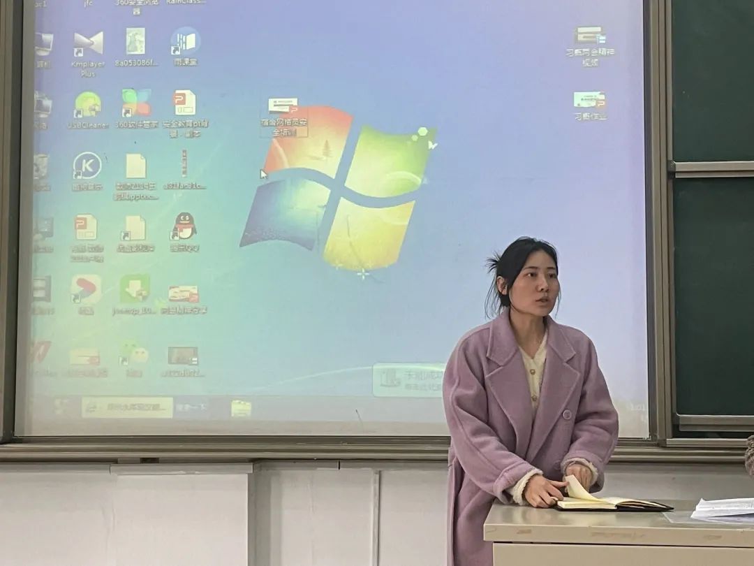 李永丹老师对当前宿舍网格员的素质要求、工作内容、工作原则进行介绍,强调了宿舍网格员承担着学生宿舍安全管理,信息宣传教育等重要职责,希望宿舍网格员能够关注同学安全健康,做宿舍安全的“守护员”;辅助做好安全宣传,做宿舍安全的“服务员”;协助做好信息反馈,做宿舍安全的“信息员”。学生会分管主席朱奕钒介绍了各项宿舍违章行为,并结合因违规使用电器引发火灾的真实案例,讲解了防火和应对措施,希望网格员能够将宿舍规则制度和安全知识准确传达给每一位同学。