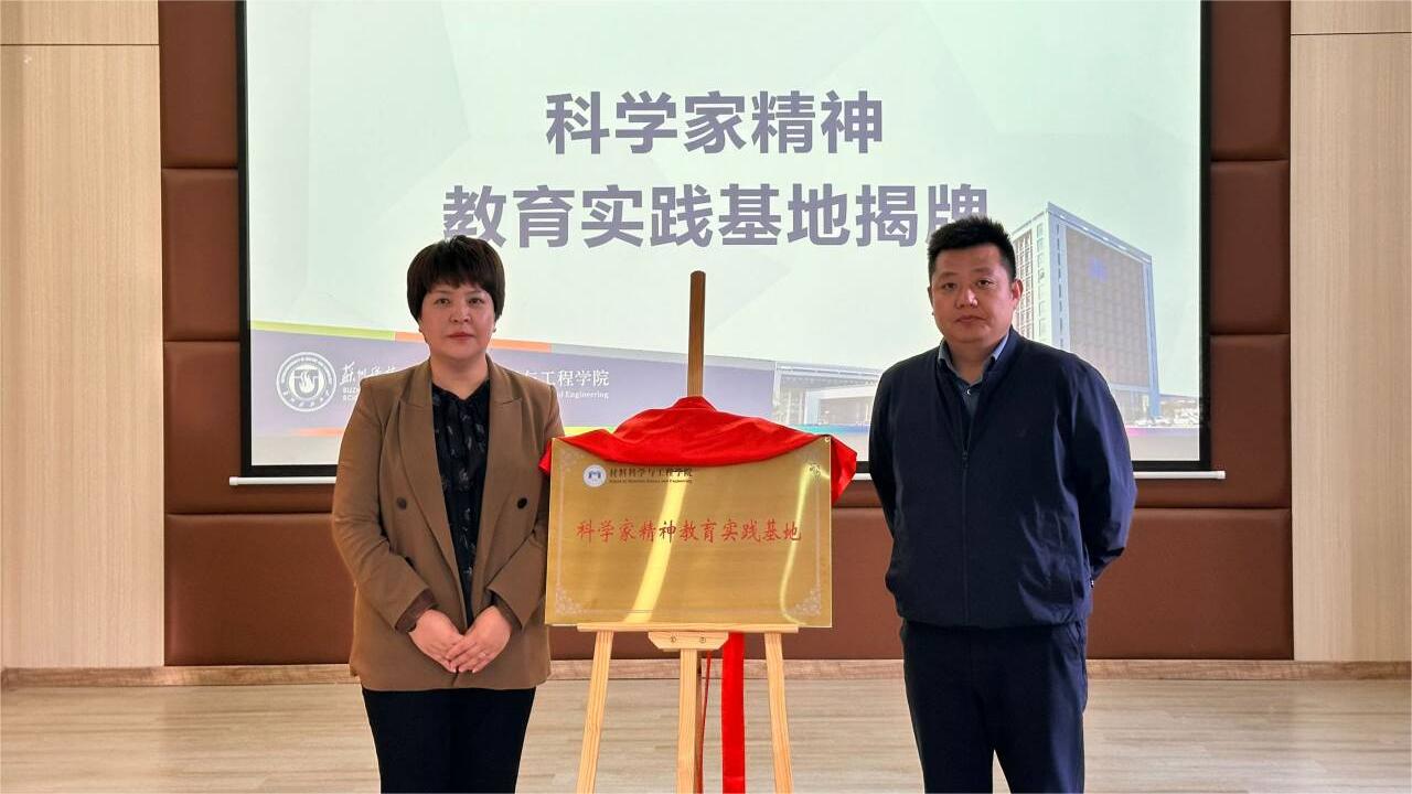 和洁、梅平共同为15VIP太阳集团“科学家精神教育实践基地”揭牌。孙云飞、杨晓刚为学院双创导师代表颁发聘书。