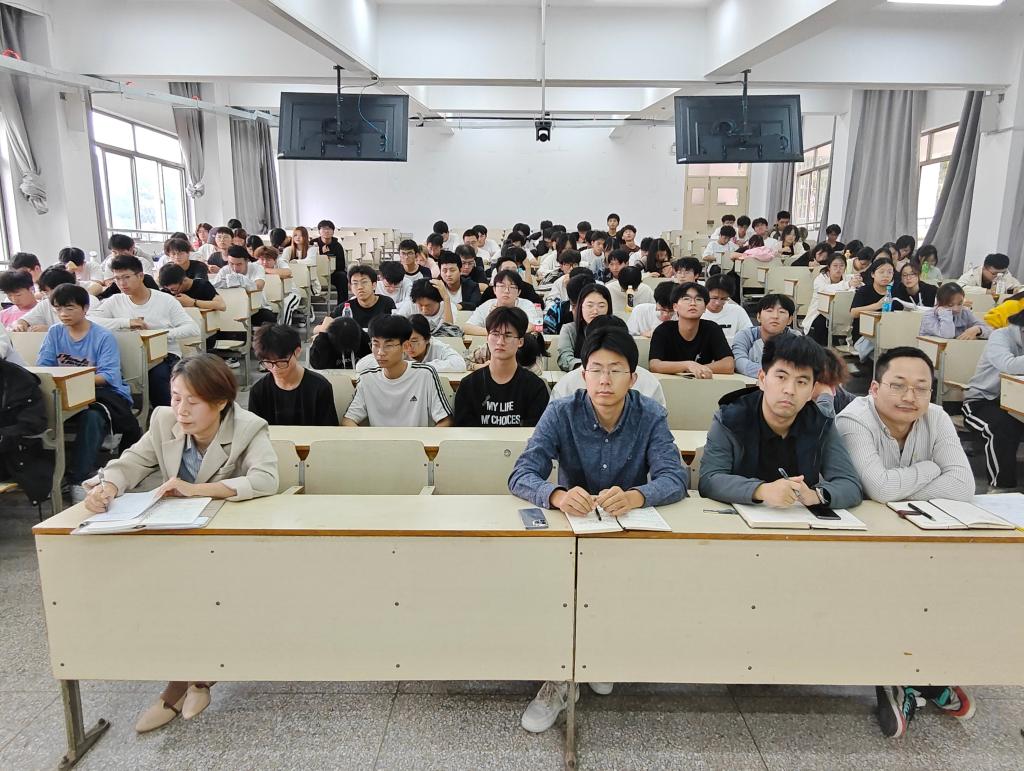 施亚东从理想信念的含义和重要性为切入点进行阐述,通过讲述中国革命四个历史阶段取得的伟大成就阐述了“革命理想高于天”的深刻意义,让同学们深刻感受到信仰的强大力量。他强调中国共产党人始终坚守为人民谋幸福,为民族谋复兴的初心使命,鼓励同学们要将个人理想与党的理想紧密结合,塑造“忠诚、干净、担当”的政治品格,弘扬优秀的中国传统文化,把握国家和世界发展的总趋势,坚定理想信念、厚植爱国情怀,加强品格修养、培养奋斗精神,拓宽视野、增长见识、提升素养,努力成为具有国际视野和创新能力的复合型人才,抓住前所未有的机遇与挑战机会,为中国式现代化建设挺膺担当。