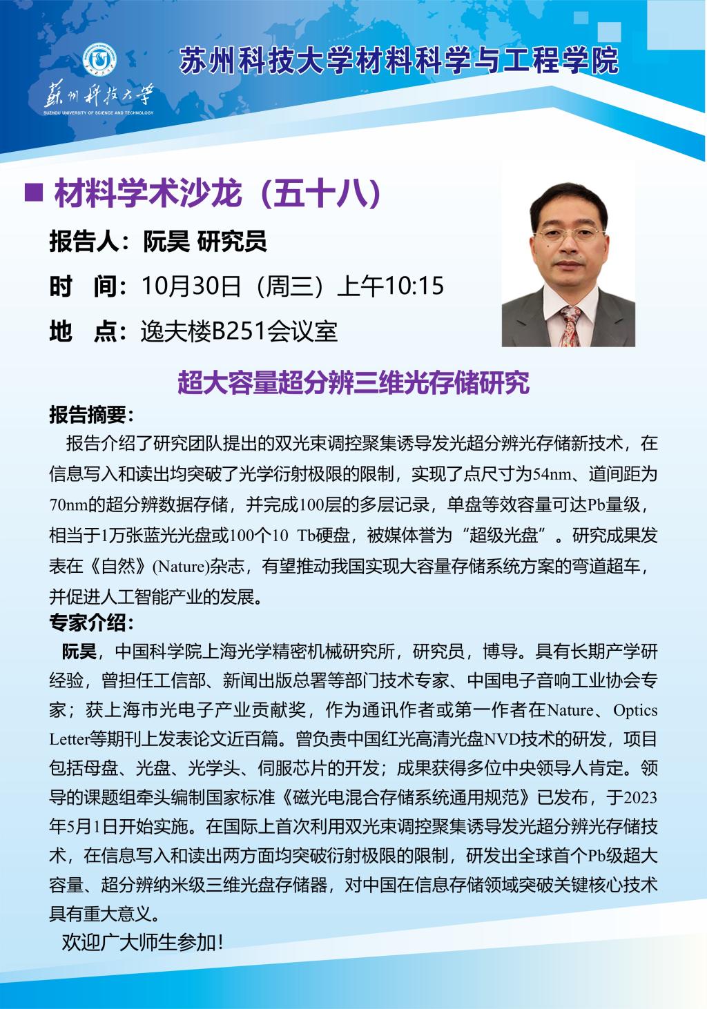 材料学术沙龙五十八:超大容量超分辨三维光存储研究