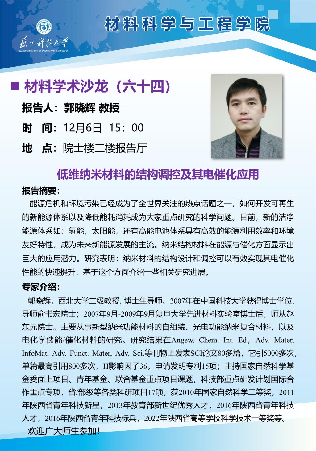 材料学术沙龙六十四:低微纳米材料的结构调控及其电催化应用