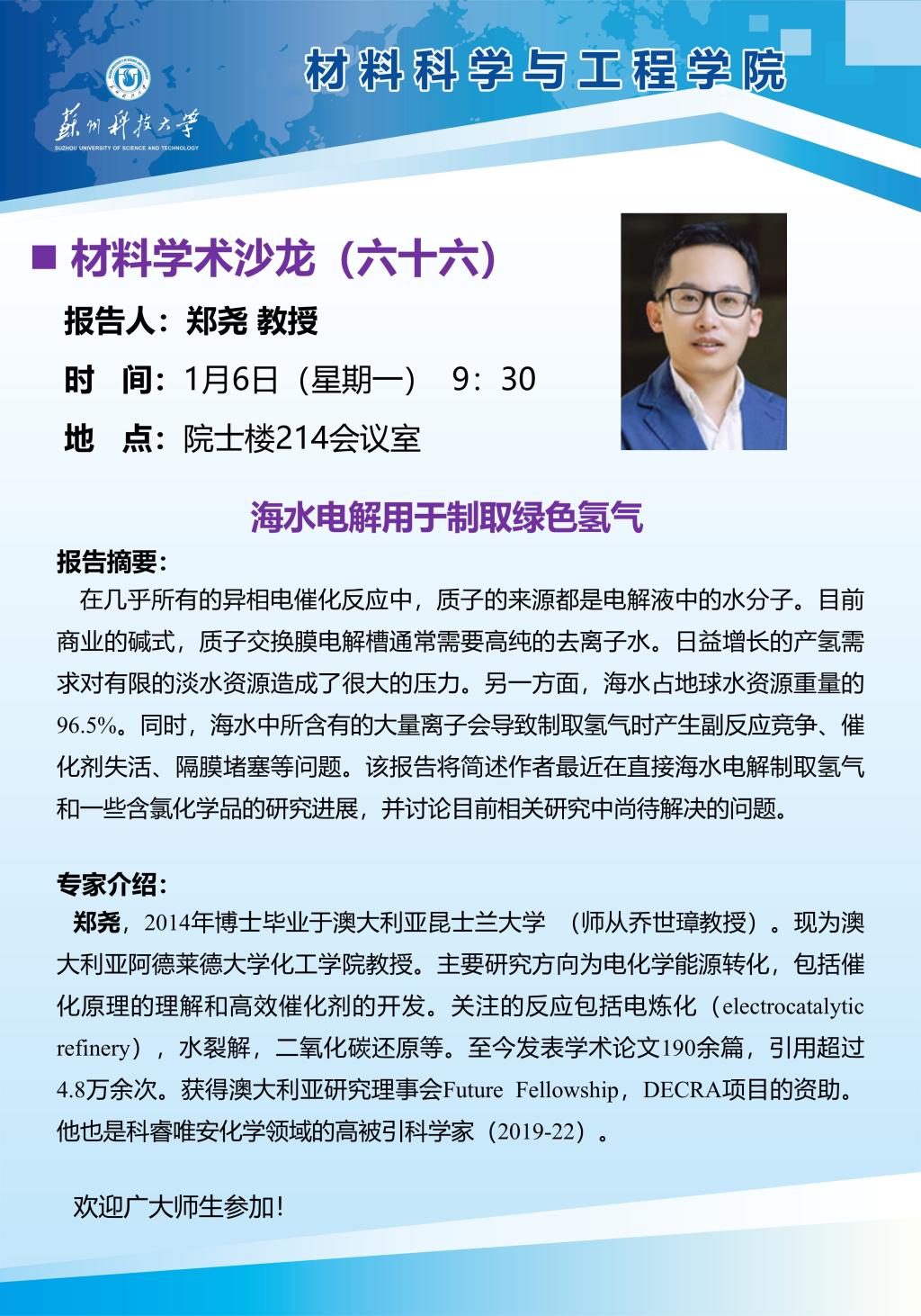 材料学术沙龙六十六:海水电解用于制取绿色氢气