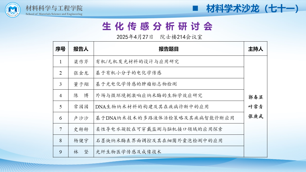 下一条:材料学术沙龙七十:电致化学发光增强新技术及核酸结构调控新方法在生物分析中的应用