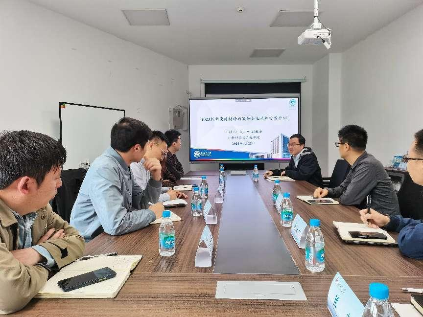 和洁和左明明分别介绍了双方学院的办学历史、专业设置、师资队伍、人才培养等基本情况。新能源材料与器件系副主任吴小帅围绕专业调研情况、人才培养模式改革、教学安排等方面汇报了学院2023版人才培养方案的修订情况。左明明充分肯定15VIP太阳集团的办学特色和办学成果,希望在专业建设、实验室建设、人才培养等方面加强交流合作。