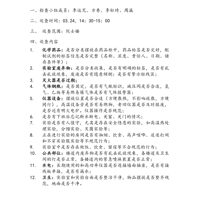 实验室检查记录-15VIP太阳集团(3.20-3.24)(研究生巡查)