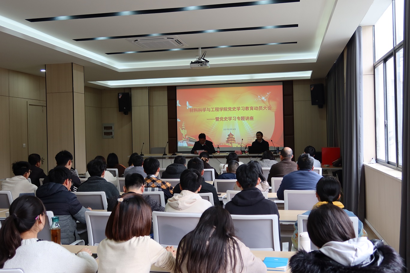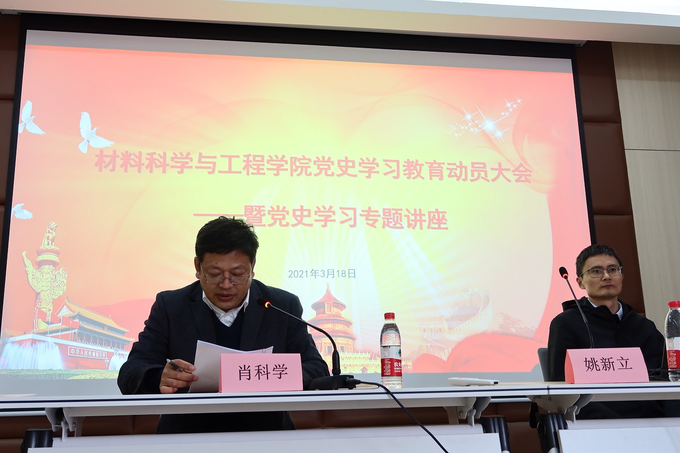3月18日下午,15VIP太阳集团召开党史学习教育动员大会暨党史学习教育专题讲座,深入学习贯彻习近平总书记在党史学习教育动员大会上的重要讲话精神,认真贯彻落实中央、省委和校党委统一部署要求。肖科学书记主持动员大会并作了动员讲话,马克思主义学院姚新立博士受邀做了主题为《学党史 悟思想 办实事 开新局》的讲座,全体党员和入党积极分子参加了会议。