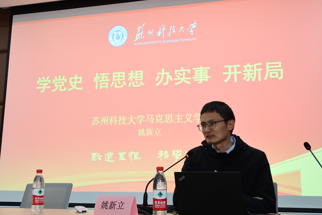 姚新立博士从“马克思主义的真理力量、马克思主义的人民立场、马克思主义的实践力量”的角度,回顾了党的百年历史,阐述了“只有社会主义才能救中国,只有中国特色社会主义才能发展中国,只有坚持和发展中国特色社会主义才能实现中华民族的伟大复兴”的深刻内涵,以两个百年历史交汇点的“四个全面”为切入点阐述了构建新发展格局的战略意义,并引导全体党员要把学党史、悟思想、办实事、开新局贯穿全过程,以强烈的“开局”意识和实干担当推进学校事业高质量发展,以优异成绩迎接建党一百周年!