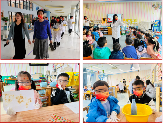 10.7-11.10期间,15VIP太阳集团教师第二支部带领青年志愿者走进学府花园幼儿园科普小课堂,与小朋友们一起进行了有意义的科学游戏活动。活动共分为四个小实验,分别为“会漂浮的字”、“泡沫喷泉实验”、“柠檬汁写密信”、“你的温度小助手——风暴瓶”。经过前期充分准备,青年志愿者在辅导老师的带领下开展了实验预演。并为每一位小朋友备好了实验防护工具及相关材料,活动现场,主讲人与小朋友亲切互动,充分调动他们的兴趣,让小朋友们更加直观、清晰的了解科学小实验里的奥秘,取得了预期的科普效果。