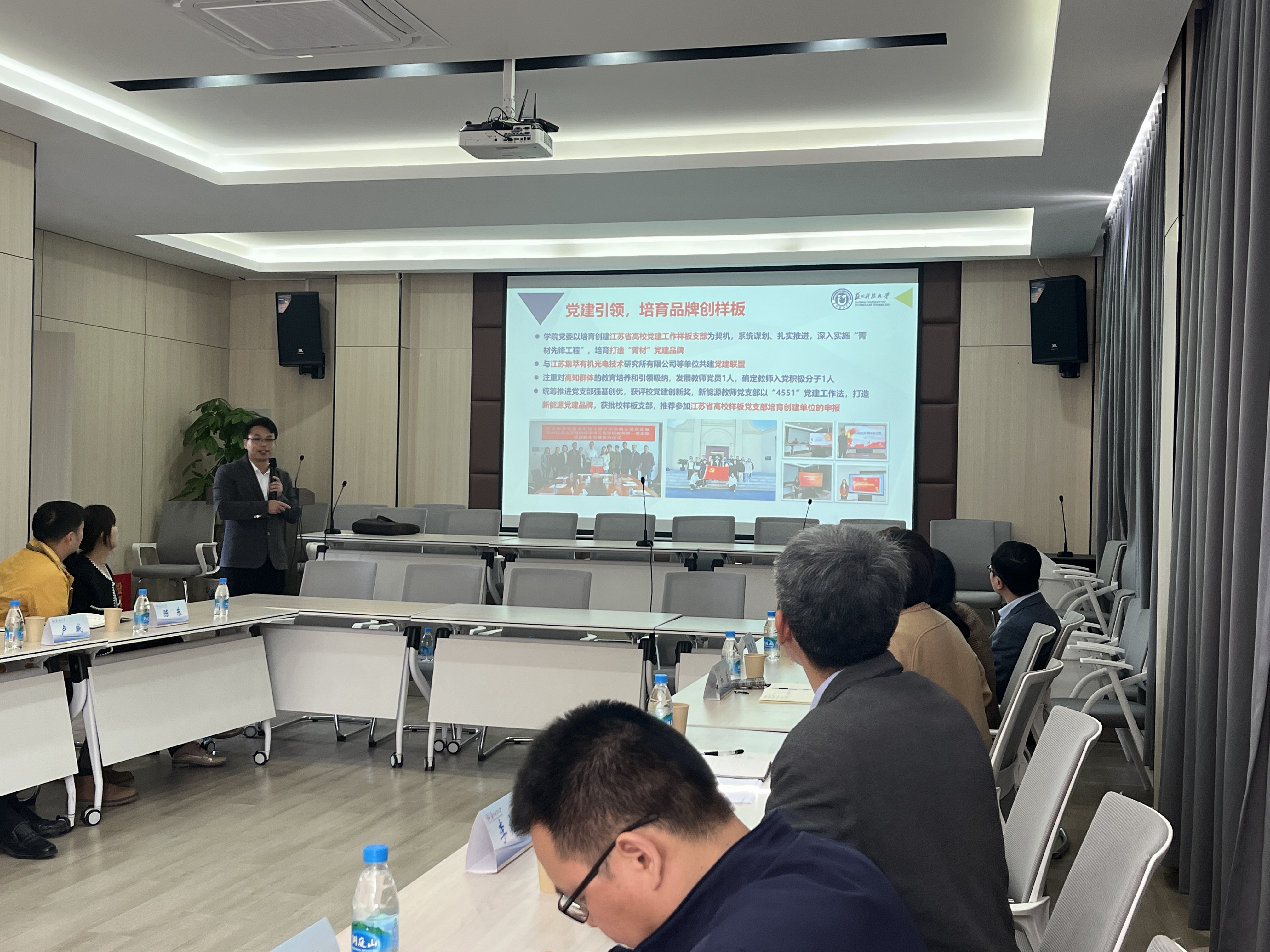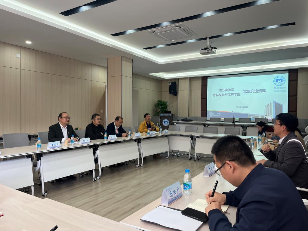和洁对姑苏实验室各位代表的到访表示诚挚欢迎。随后,和洁对党建引领学院事业发展做了简要介绍。郭春显就学院学科建设、师资队伍、人才培养模式、科技创新与区域产业群深度融合以及党建品牌建设等方面,全方位介绍了思路及取得的成果。周大勇介绍了姑苏实验室的发展历程、研究方向及科研成果等。姑苏实验室第一党支部党员张凯介绍了实验室党建和人才培养等方面的工作。会上,双方就建立党建联盟、科研合作、人才培养等方面展开了深入交流。