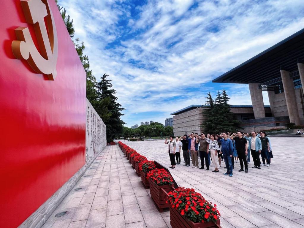 在南湖革命纪念馆内,教师们深入学习党的伟大创建历程,先后参观了“救亡图存”、“开天辟地”、“光辉历程”、“走向复兴”等展厅,一幅幅画卷、一册册书籍、一件件文物、一面面浮雕定格了无数伟大的时刻,重现了一代又一代中国共产党人顽强拼搏、不懈奋斗的革命瞬间。大家认真驻足观看,仔细察看史料,在厚重的文史资料和先进的展示场景中,深刻感受共产党人开天辟地、敢为人先的首创精神,坚定理想、百折不挠的奋斗精神,立党为公、忠诚为民的奉献精神,从回溯“红船精神”的初心中汲取奋进力量。在南湖革命纪念馆宣誓墙前,全体党员重温入党誓词,大家面向党旗,紧握右拳,昂首挺胸,庄严宣誓。