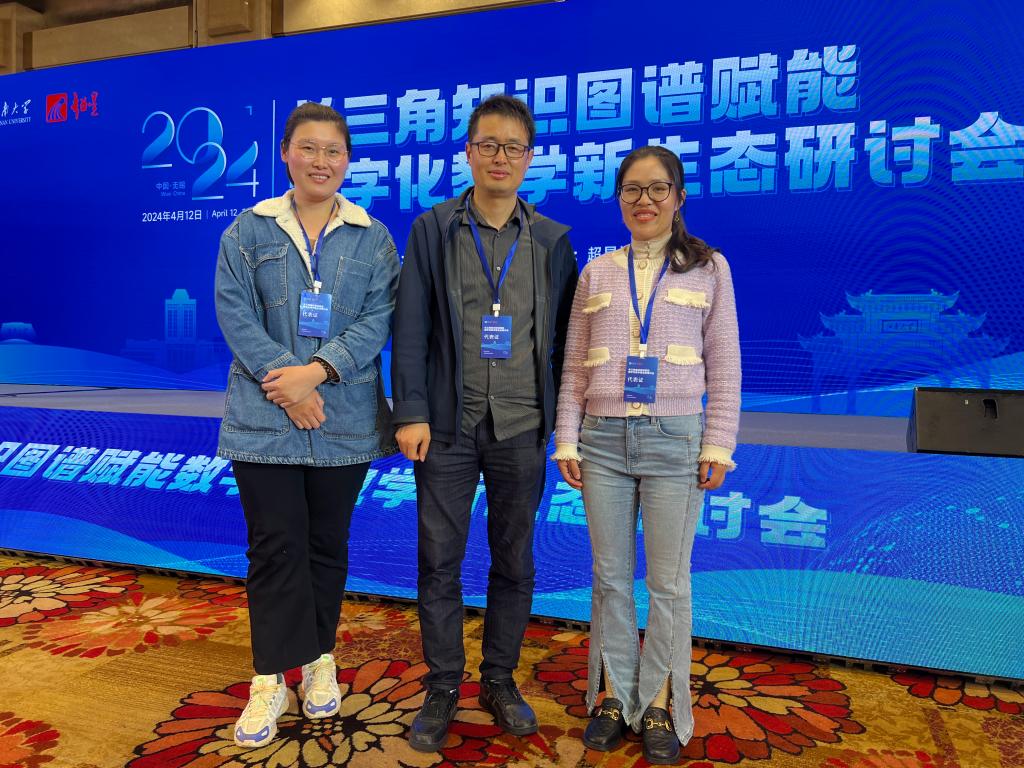 4月12日,15VIP太阳集团副院长杨晓刚、青年教师李昂、李静莎一行赴江苏无锡,参加了长三角知识图谱赋能数字化教学新生态研讨会。