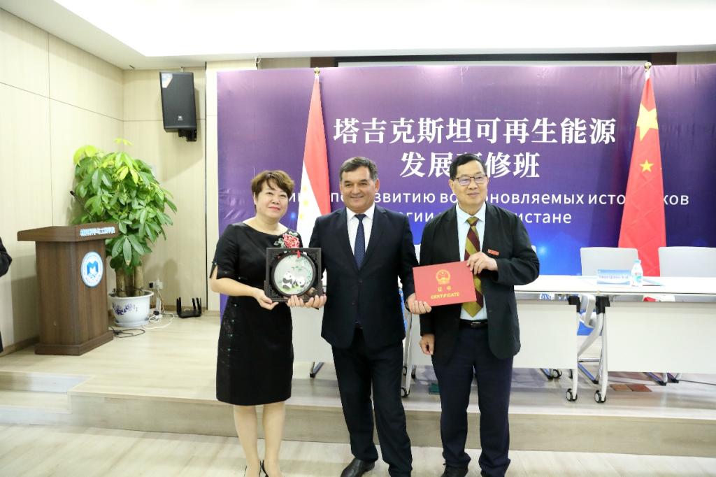 来自塔吉克斯坦共和国博赫塔尔市政府的VALIZODA QUBRON市长代表全体学员表达了对学校的感谢,强调了研修班在知识交流、技术学习以及文化体验方面的丰富成果,并鼓励大家将所学应用于推动可再生能源领域的发展和国际合作。最后李长明为学员颁发了结业证书,赵瑾向学员赠送了学校纪念品。